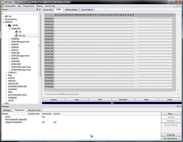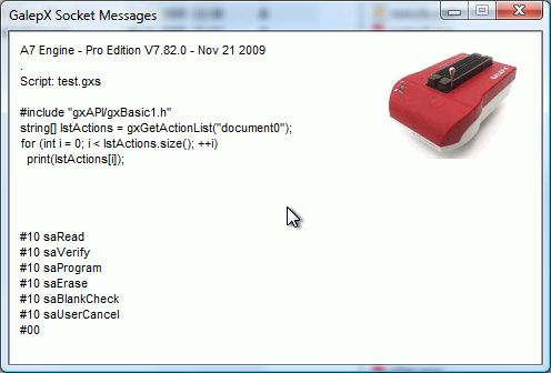 The GalepX software can be remote controlled by script files or by user applications. All functions of the user interface, like loading and saving projects, programming or deleting devices, or setting device flags are accessible to other processes through script commands.