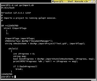Under Linux, commands can be sent directly to GalepX through shell scripts. The script command connect localhost port 1233 opens the socket; the following commands are then sent directly to the socket.